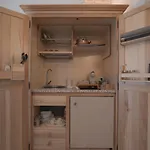 A fürdőszobában zuhanyfülke és külön WC szintén biztosított.
